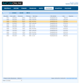 U ovoj sekciji nalazi se evidencija svih plaćanja. Možete pretraživati, sortirati, filtrirati, unositi, uređivati i brisati uplate.