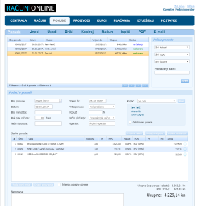 izrada računa iz ponude, storniranje računa, kopiranje ponuda i računa, preuzimanje ponuda i računa u PDF formatu, uvoz/izvoz